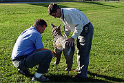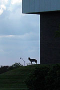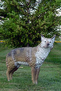 If you walk between buildings on our campus, you are familiar with our resident Canadian Geese. Unfortunately, they use the grass and sidewalks to leave their copious droppings. In an effort to manage the geese and their droppings, REWHC placed 8 coyote decoys throughout the campus on 29 September 2003. These coyote decoys are life size and very realistic. REWHC members and fellow employees provide any goose sightings to a special email address.